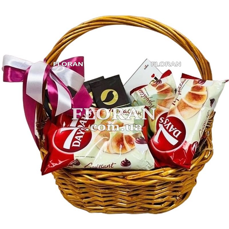 Кошик з круасанами - код товару FL-2051 - це неймовірно приємний і теплий подарунок, який підніме настрій і додасть затишку в холодні осінні дні. У ній зібрані частування, які додадуть яскравих моментів у сірі будні та зроблять щоранку особливим. Цукерки Merci - це справжнє задоволення для ласунів. Різноманітність смаків та ніжне поєднання шоколаду та начинки підкорюють серця багатьох. Ці цукерки - ніжне частування, яке подарує радість та тепло. Круасани - це ароматні та хрумкі випічка, яка просто створена для ранкової кави або чаю. Вони додадуть нотку французької романтики щодня і подарують незабутнє задоволення. А гарячий шоколад – це справжній бальзам для душі у холодні осінні дні. Він зігріє, підніме настрій та додасть комфорту. Такий подарунок ідеально підійде на День Вчителя, щоб висловити подяку вчителю чи вихователю за їхню важливу та нелегку працю. Він також подарує радість будь-якого осіннього дня і стане символом тепла та турботи. Замовте цей кошик з круасанами у нас, і ми із задоволенням доставимо його одержувачу, створивши особливий момент тепла та затишку в його житті.