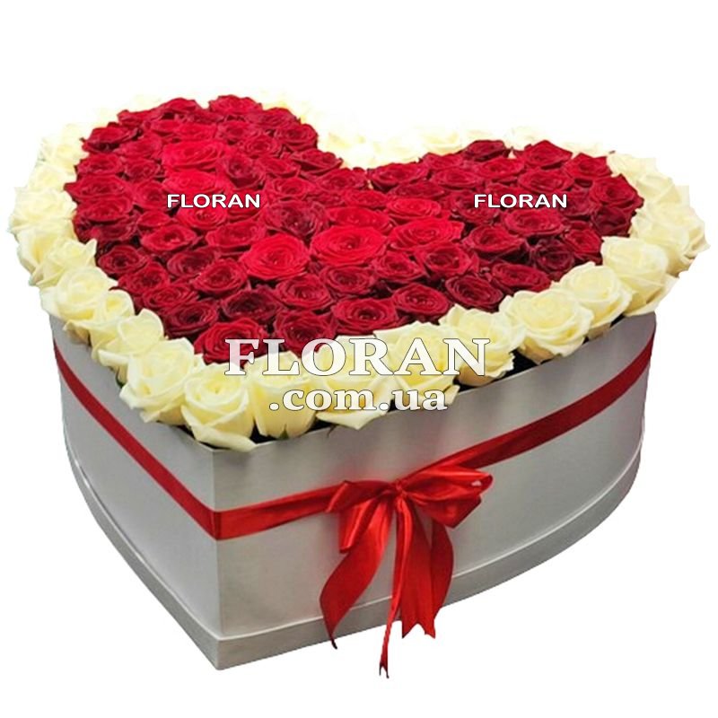 Красиві троянди з серцем - код товару FL-267. Це унікальний букет, який стане прекрасним подарунком для коханої людини. Серце з квітів - це не тільки красиво, але і символічно. Адже троянди - це символ любові та пристрасті. У цьому букеті 101 червона і біла троянда, які створюють неповторну композицію з троянд. Квіткове серце червоного і білого кольору - це незвичайний і красивий спосіб висловити свої почуття.