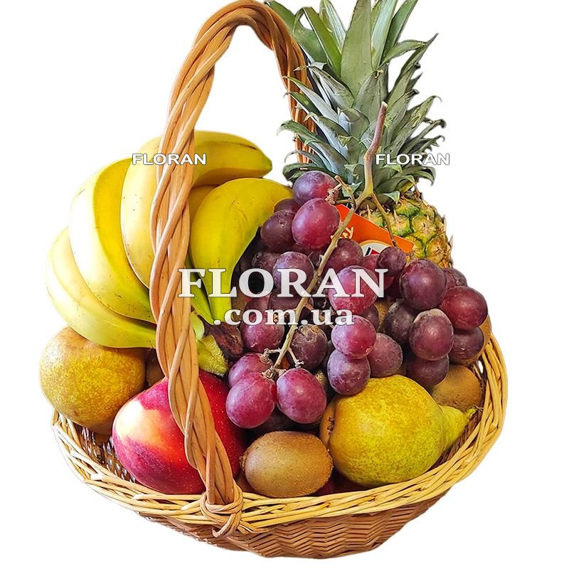 Красивий кошик із фруктами - код товару FL-1975 - це справжній шедевр природи, зібраний в одному затишному місці. У цьому кошику ви знайдете найапетитніші та найсвіжіші фрукти, які радують око і балують смакові рецептори. Ананас, яблука, виноград, апельсини, груші, ківі та банани - це не тільки смачні дари природи, а й яскравий символ рясності та здоров'я. Цей кошик із фруктами ідеально підходить для подарунка керівнику або діловим партнерам. Його вишуканий вигляд і розмаїття фруктів говорять про вашу повагу, увагу та бажання поділитися чимось особливим. Це не просто кошик із фруктами, це символ вашого професіоналізму та турботи про ділові відносини. Ми пишаємося пропонувати послугу доставки наших фруктових кошиків у містах України. Ми розуміємо, як важливо зробити ваші подарунки особливими, тому наша команда дбайливо запаковує кожен кошик і дбає про свіжість та якість кожного фрукта. Наша доставка гарантує, що ваш подарунок дійде вчасно та в ідеальному стані, щоб створити незабутню мить радості для вас і одержувача.