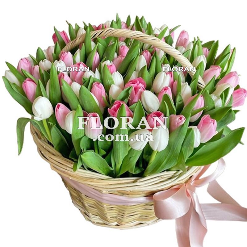 Красивий кошик зі 101 тюльпану - код товару FL-2463 - це чудове втілення ніжності, романтики та багатства почуттів. Цей букет, що складається з 101 тюльпана, включає як білі, так і рожеві квіти. Кожен із них є символом чистоти, невинності та ніжних почуттів. Число 101 може мати особливе значення, і такий букет підходить для особливих моментів у житті, таких як весілля. Тюльпани в даному випадку символізують чистоту та ніжність кохання молодої пари, а також веселку можливостей та гармонію у стосунках. Білі тюльпани підкреслюють чистоту намірів та вірність, а рожеві – ніжні та ласкаві почуття. Кошик, в якому представлений цей букет, додає елемент елегантності та зручності. Букет вже красиво оформлений та не потребує додаткових зусиль для його презентації. Таким чином, він стає ідеальним подарунком на весілля, де кожна деталь є важливою. Цей букет висловлює глибоку прихильність і бажання побажати молодятам нескінченного щастя, кохання та процвітання. Він наповнює важливу подію світлими фарбами та прикрашає цей особливий день у житті.
