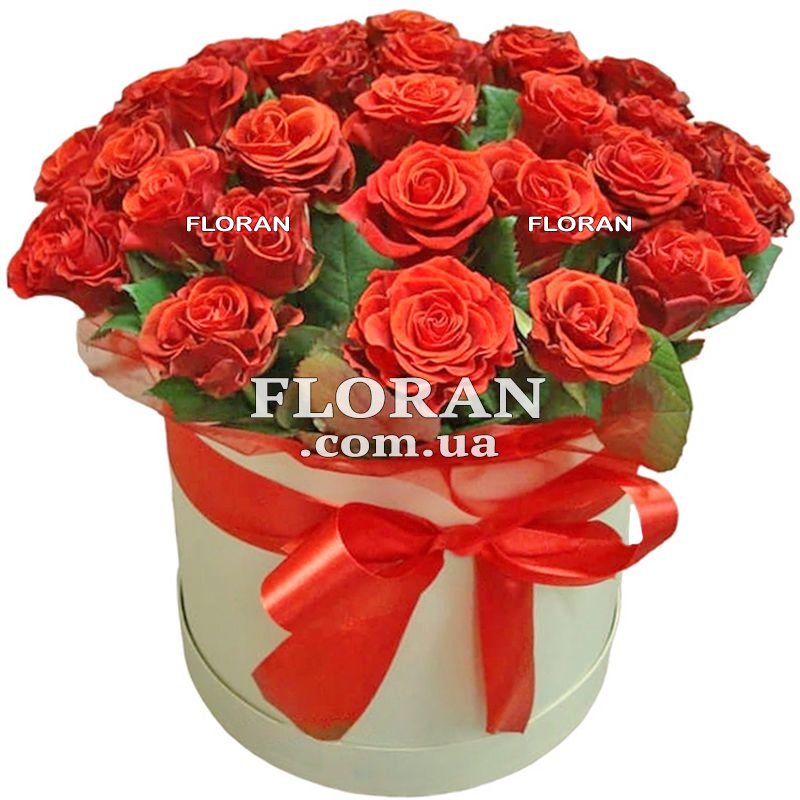 Квіткова композиція із квітів - код товару FL-1768 - включає 39 червоних троянд сорту Ель Торо, і представлена в елегантній коробці. Цей букет є чудовим проявом пристрасті та кохання, і ідеально підходить для особливих моментів у житті. Кожна червона троянда у цій композиції є символом сильних емоцій та відданості. Їх насичений червоний колір приваблює погляди та уособлює пристрасть та любов. Поєднання всіх 39 троянд створює вражаючу та ефектну композицію, яка запам'ятається на довгий час. Отримувач цього прекрасного букета буде захоплений і зворушений вашою увагою. Червоні троянди сорту Ель Торо є втіленням романтики та ідеальним способом висловити свої глибокі почуття. Ваша кохана буде щаслива отримати цю розкішну композицію, яка нагадає їй про вашу любов і відданість. Команда нашої кур'єрської служби охоче доставить цю квіткову композицію в коробці в будь-яке місто або місце, яке ви вкажете. Ми подбаємо про те, щоб букет прибув у безпеці та свіжості, щоб радувати одержувача своєю красою та ароматом. Не пропустіть можливість порадувати вашу кохану чи особливу людину цією чудовою квітковою композицією. Вона стане незабутнім подарунком, який залишить яскраві враження і зобразить ваше кохання в серці одержувача надовго.