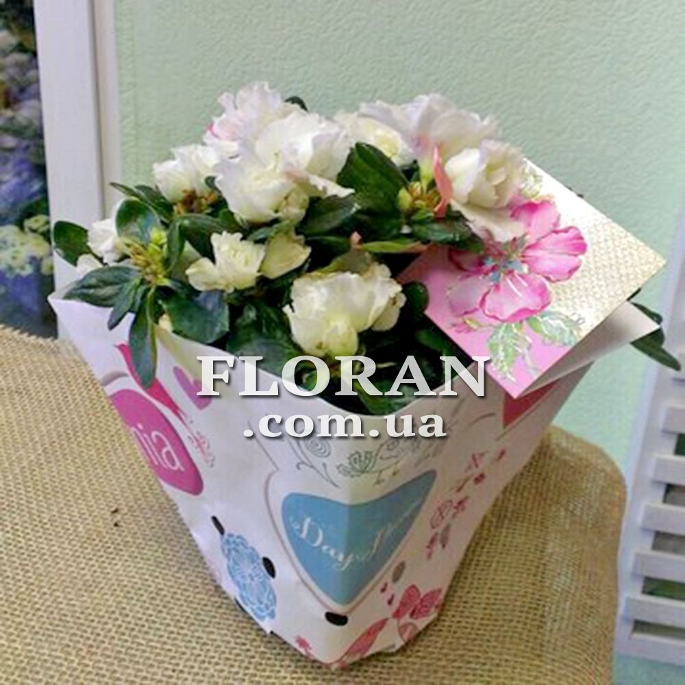 Квітка горщикова рослина- код товару FL-571. Азалія - це красива квітуча рослина, яка в подарунок може принести безліч позитивних емоцій. Її ніжні пелюстки та яскраві кольори здатні підняти настрій та створити атмосферу затишку та радості. Здобути азалію в подарунок - це не тільки приємно, а й символізує турботу та увагу до одержувача. Ця рослина універсальна і може підійти для будь-якого віку та статі, а також для будь-якого випадку – від Дня Народження до професійного свята або просто на знак уваги.