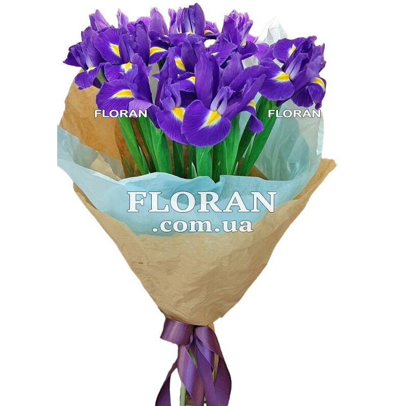 Квіти іриси букет - код товару FL-310. Цей букет з ірисів порадує будь-якого одержувача своєю красою і ніжністю. У ньому 15 синіх ірисів, які надають букету особливий шарм. Іриси - це квіти, які символізують вірність, мудрість і повагу. Синій колір ірисів додає загадковості й таємничості. Цей букет з ірисів із синіми квітами стане прекрасним подарунком для будь-якого випадку. Якщо ви хочете висловити свої почуття ірисами, то цей букет синіх ірисів - ідеальний вибір. Він підійде для дарування коханій людині, мамі, сестрі або колезі. Подаруйте цей букет ірисів синього кольору і ви точно не залишитеся непоміченим.