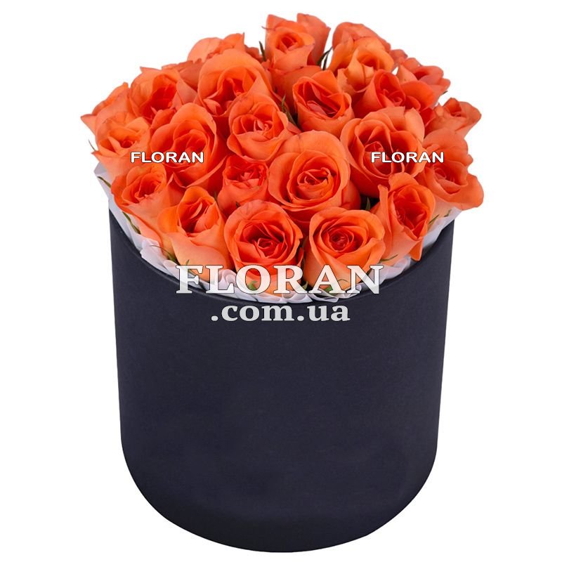 Квіти в чорній коробці - код товару FL-187. Квіти в чорній коробці - це завжди стильний і елегантний подарунок. А якщо це 25 помаранчевих троянд, то це ще й незабутній сюрприз, який залишить яскраві спогади на довгі роки.