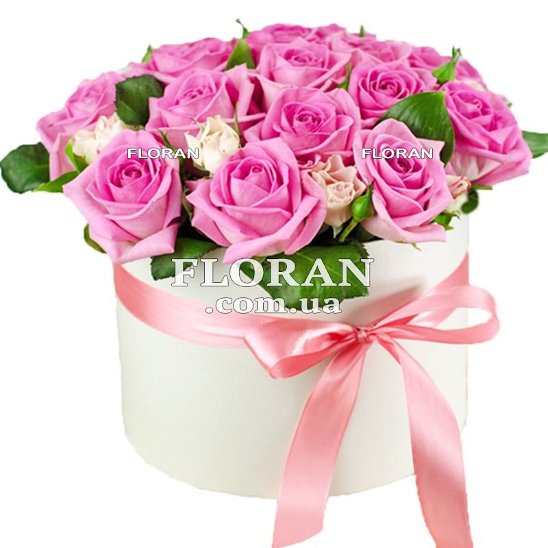 Квіти в круглій коробці - код товару FL-196. Цей букет з українських троянд і кущових троянд стане прекрасним подарунком для будь-якого випадку. Квіти в коробці - це не тільки красиво, але й зручно. Вам не потрібно шукати вазу, щоб поставити букет, він уже готовий до використання.
