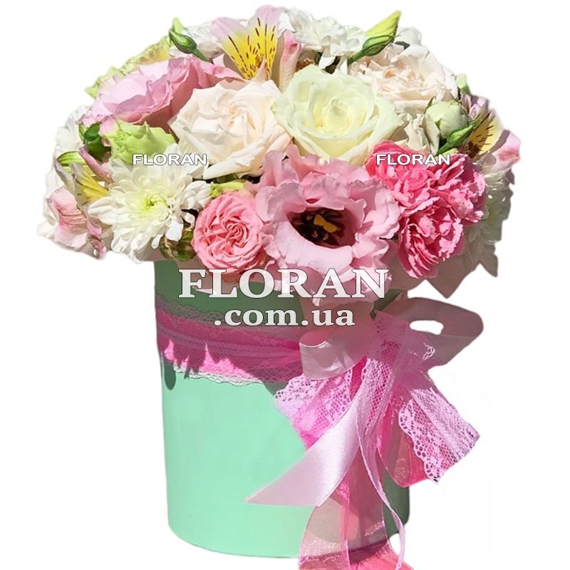 Квіти в зеленій коробці - код товару FL-2937 - це яскраве поєднання свіжих та витончених кольорів, представлених в елегантній зеленій упаковці: 3 білі троянди: Троянди завжди були символом чистого та щирого кохання. Білий колір троянд надає букету благородства. 3 альстромерії: Альстромерії додають нотку екзотики та надають композиції вишуканого вигляду. 3 гвоздики: Гвоздики, як символ стійкості та міцності, вносять у букет елемент стійкості. 2 еустоми: Еустоми, або статиці, надають композиції легкість та делікатність. 2 білі хризантеми: Білі хризантеми символізують щирість та чистоту почуттів. Зелена коробка: Колір зеленої коробки додає свіжості та природності, створюючи гармонію з природою. Цей букет у зеленій коробці - відмінний вибір для подарунка на знак кохання, подяки або просто для того, щоб створити святковий настрій. Наша служба доставки забезпечить збереження та свіжість квітів під час транспортування, щоб ваш подарунок був особливим та неповторним.