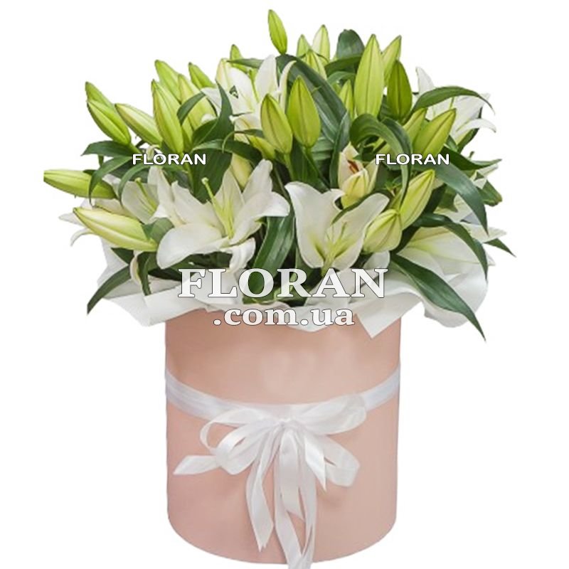 Лілії в коробці - код товару FL-2947 - це неймовірно вишукана композиція, яка принесе у ваше життя атмосферу ніжності та вишуканості. У цій дивовижній коробці ви знайдете 11 білих лілій, що символізують чистоту та вишуканість. Купуючи цей букет у нашому магазині, ви можете бути впевнені у високій якості та свіжості кожної квітки. Наші флористи з великою майстерністю створюють кожну композицію, прагнучи зробити її по-справжньому неповторною. Наша служба доставки гарантує дбайливе перевезення вашого букета, щоб він досяг отримувача в ідеальному стані. Кур'єри працюють щодня, забезпечуючи своєчасну доставку за зручною для вас адресою. Лілії - це не лише гарні квіти, а й символ гармонії, добробуту та витонченого смаку. Подарувавши цей букет, ви висловлюєте щирі почуття та робите важливий крок до створення особливого моменту у житті. Лілії у коробці - це елегантний подарунок для особливих людей.