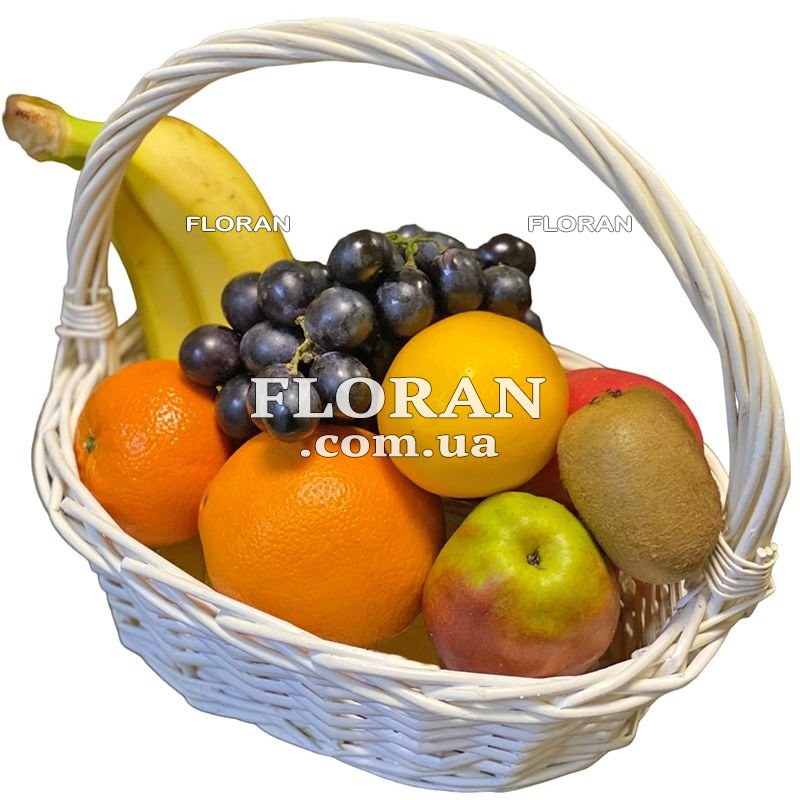 Маленький кошик із фруктами - код товару FL-2002 - це маленька скринька здоров'я та смаку, що скрасить день і подарує радість. У цій невеличкій композиції ви знайдете яскраві апельсини, соковиті яблука, екзотичне ківі, солодкі банани й ароматні мандарини, а також освіжаючий лимон і виноградне частування. Цей маленький кошик - чудовий доказ того, що навіть маленький подарунок може нести в собі великий сенс. Він підходить для будь-яких випадків: чи то знак уваги в повсякденний день, чи то невеликий подарунок на свято. Адже даруючи свіжі та корисні фрукти, ви даруєте турботу про здоров'я і гарний настрій. Якщо ви хочете потішити когось особливого цим маленьким кошиком із фруктами, не важливо, в якому місті перебуває одержувач. Наш інтернет-магазин готовий допомогти вам доставити цей невеликий, але значущий подарунок у будь-який куточок України.