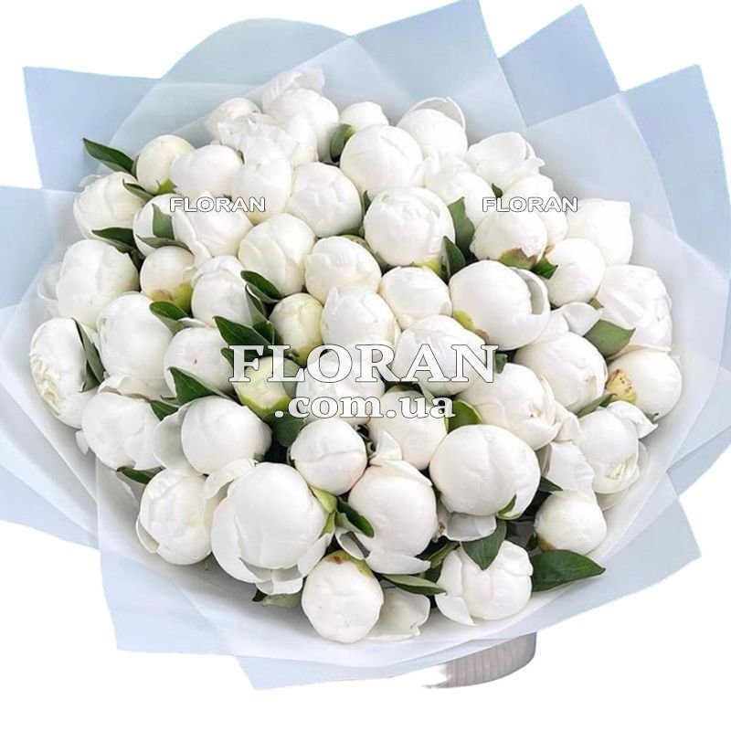Модний букет півоній - код товару FL-3045. Запрошуємо вас купити модний букет з 55 білих імпортних півоній з доставкою квітів, щоб подарувати особливий момент і створити елегантну атмосферу. Імпортні півонії вирізняються вишуканою якістю та неповторним зовнішнім виглядом, який уособлює вишуканість і розкіш. Наші професійні флористи зберуть цей букет з турботою та увагою до кожної квітки, щоб він став не лише чудовою прикрасою, а й символом ваших найкращих побажань і почуттів. Доставка квітів дозволить вам потішити близьких у будь-якій точці міста, роблячи будь-яку подію особливою і незабутньою. Замовте модний букет півоній просто зараз і переконайтеся в його перевазі. Цей подарунок буде ідеальним вибором для будь-якого приводу - від днів народження і весіль до простого бажання порадувати близьких і близьких серцю людей.