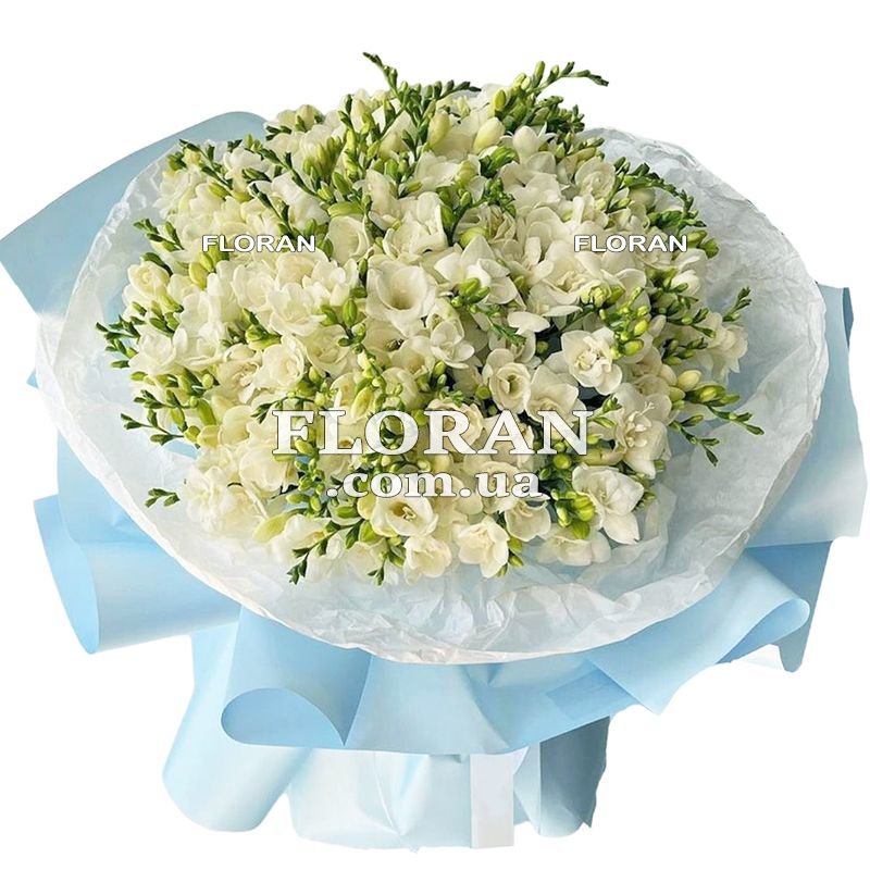Незвичайний букет фрезій - код товару FL-1599 - це ніжний та чудовий твір квіткового мистецтва. У цьому букеті зібрано цілу 71 білу фрезію, створюючи приголомшливий візуальний ефект. Біла фрезія символізує чистоту, ніжність та невинність. Вона ідеально підходить для подарунка сестрі, адже вона є уособленням душевного зв'язку та близькості між братами та сестрами. Білий колір фрезії також може виражати повагу, подяку та безмежне кохання. Цей букет привертає увагу своєю неповторною красою та вишуканістю. Білі фрезії утворюють гармонійні композиції, створюючи враження легкості та легкості. Їхній яскравий аромат наповнює простір ніжністю та свіжістю. Букет упакований із турботою та професіоналізмом, щоб кожна квітка залишалася свіжою та прекрасною. Упаковка підкреслює вишуканість та оригінальність букета, роблячи його готовим до презентації та вражаючим з першого погляду. Незвичайний букет фрезій - це чудовий спосіб висловити своє кохання, турботу і подяку своїй сестрі. Він стане неповторним подарунком на день народження, ювілей чи будь-який інший особливий випадок. Цей букет символізуватиме ваш особливий зв'язок і значущість вашого відношення. Подаруйте вашій сестрі незвичайний букет фрезій і даруйте їй красу, ніжність та радість. Дозвольте їй відчути все ваше кохання та турботу через цей чарівний квітковий аромат. Букет фрезій - це особливий спосіб сказати спасибі і я люблю тебе в найяскравішому і прекрасному вигляді.