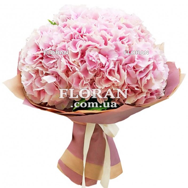 Ніжний букет гортензій - код продукту FL-1524. Ніжний букет із п'яти рожевих гортензій в упаковці – це чудовий вибір для тих, хто цінує елегантність та ніжність у квіткових композиціях. Рожевий колір гортензій символізує ніжні почуття, любов та добробут, роблячи цей букет ідеальним подарунком для особливих моментів та значних подій. Кожна гортензія в цьому букеті є великою і витонченою квіткою з безліччю дрібних пелюсток, що створюють пишність і розкіш. Вони наповнюватимуть кімнату своїм ніжним ароматом і привертатимуть увагу своїм прекрасним виглядом. Упаковка букета додає особливої вишуканості та завершеності до його загального вигляду. Вона захищає квіти і зберігає їхню свіжість, дозволяючи їм залишатися красивими і довго радувати свого власника. Незалежно від приводу, будь то романтичне побачення, день народження, ювілей або просто бажання висловити своє кохання та турботу, цей букет гортензій стане чудовим подарунком. Він буде говорити про ваші щирі почуття і створювати атмосферу ніжності та романтики. Ми гарантуємо, що букет буде зібраний професійно та з любов'ю, щоб передати всі ваші емоції та почуття одержувачу. Дозвольте нам допомогти вам створити особливий момент і порадувати вашу близьку людину цим ніжним букетом із п'яти рожевих гортензій в упаковці.