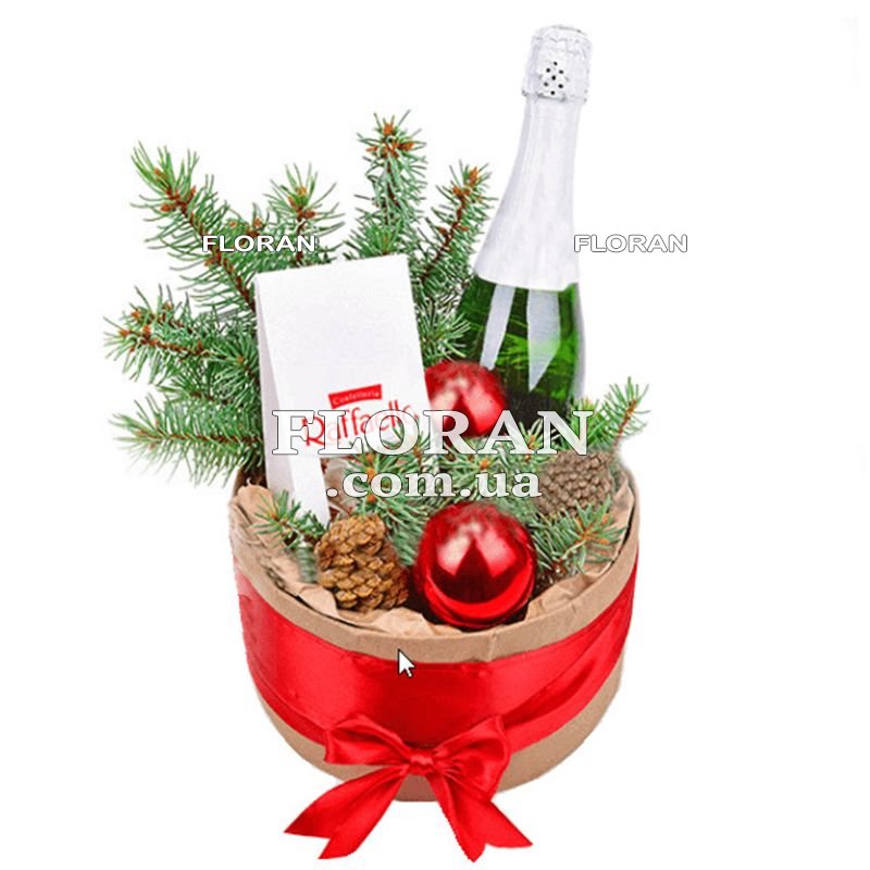 Новорічна композиція з шампанським – код товару FL-2141 – це чудовий подарунок для створення чарівної атмосфери свята. У цій композиції ви знайдете вишукані цукерки Raffaello, які подарують солодкі моменти радості. Шампанське вітчизняного виробництва додасть настрій свята та доповнить святковий стіл іскристою грою бульбашок. Дві ялинкові кулі, всередині яких також може бути маленький сюрприз, прикрасять ваш простір, створюючи затишок та святковий настрій. Гілки ялинки або сосни додають цій композиції атмосферу зимової казки та надають природної краси вашому подарунку. Всі елементи цієї новорічної композиції зібрані у стильній коробці, що робить її зручною для доставки та подарунка. Ми готові організувати доставку цієї композиції до вас або до ваших близьких, щоб подарунок припав до смаку та створив радісний настрій напередодні Нового року. Нехай цей подарунок стане символом ваших найкращих побажань та зробить свято незабутнім!