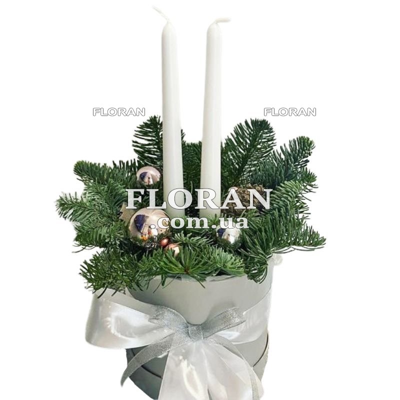 Новорічна композиція з ялинки - код товару FL-2135 - це чудовий спосіб надати вашому будинку святкового настрою та створити атмосферу чарівництва на Новий рік. У цій композиції ви знайдете гілки ялини або сосни, які додадуть вашому інтер'єру аромату свіжості і символізують святкову пору року. П'ять ялинкових кульок різних розмірів додадуть яскраві фарби та радісний настрій у вашу оселю. Ці кульки можуть бути різнокольоровими або в якійсь конкретній кольоровій гамі залежно від вашого вибору. Дві свічки додадуть композиції затишку та м'яке освітлення. Запалені свічки завжди створюють атмосферу тепла та затишку, що особливо актуально у новорічні свята. Всі елементи композиції представлені в стильній коробці, що робить її готовою до встановлення будь-де вашого будинку. Ця композиція може стати чудовим доповненням до головної ялинки або прикрасити інші куточки вашого будинку. Створіть святкову атмосферу та насолоджуйтесь Новим роком із цією затишною та стильною новорічною композицією з ялинки.