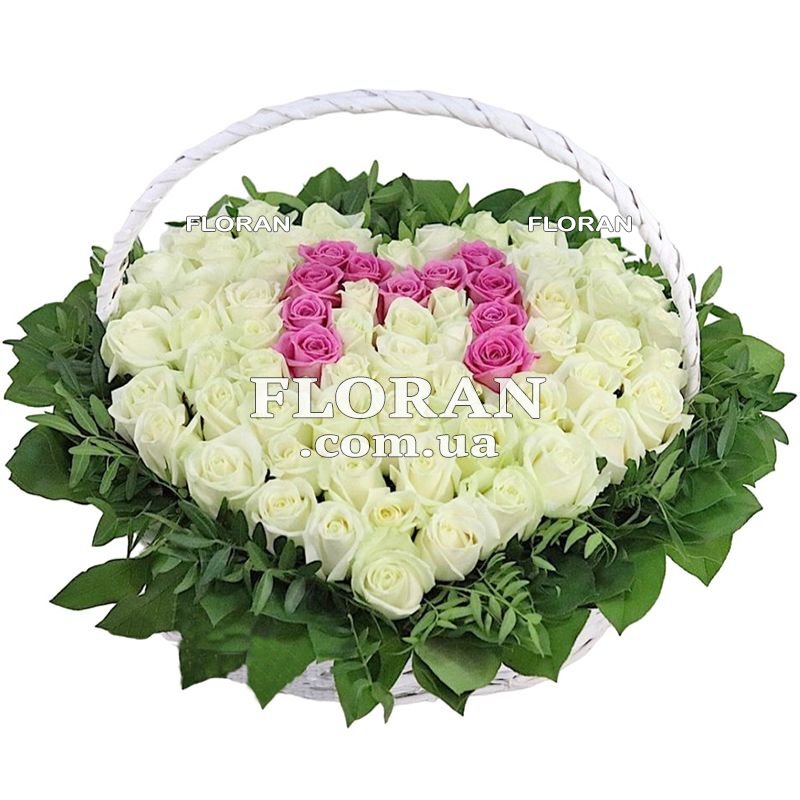 Оригінальна композиція з квітів - код товару FL-294. Троянди - це квіти, які завжди в моді. Вони підходять для будь-якого випадку і завжди викликають позитивні емоції. У нашій композиції ви знайдете 51 троянду серцем, які будуть говорити про вашу любов і турботу. Крім того, троянди білого і рожевого кольору гармонійно поєднуватимуться з будь-яким інтер'єром і підкреслять вишуканий смак власника.