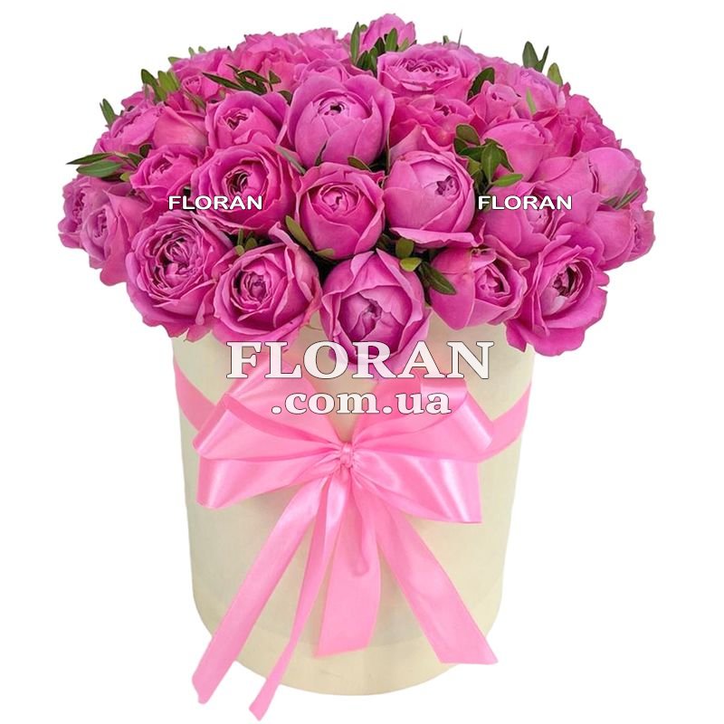 Півоноподібні троянди в коробці - код товару FL-1406. Уявіть собі дивовижний букет троянд, представлених у стильній коробці. У цьому букеті ви знайдете 25 красивих рожевих троянд, які стануть справжньою прикрасою для будь-якого особливого моменту або подарунка. Півоноподібні троянди відрізняються своєю граціозністю та витонченістю. Їхні об'ємні суцвіття та яскраві пелюстки створюють вражаючий візуальний ефект. Рожевий колір символізує ніжність, любов та романтику, роблячи цей букет ідеальним вибором для особливих людей у вашому житті. Коробка, в якій представлені ці піоноподібні троянди, додає вишуканості та елегантності. Вона надає букету сучасного та стильного вигляду, що робить його не тільки красивим, але й зручним для транспортування та подарунка. Ми гарантуємо, що кожна троянда буде свіжою та високою якістю. Наша команда професіоналів піклується про кожну деталь, щоб ви отримали найпрекрасніший і найдовговічніший букет. Доставка цього букету піоноподібних троянд у коробці доступна в різні міста, і наш кур'єрський сервіс забезпечить, щоб він був доставлений у безпеці та вчасно. Подаруйте цей чудовий букет піоноподібних троянд у коробці особливій людині у вашому житті та відчуйте радість, яку він принесе.