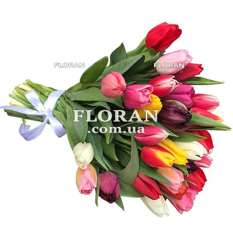 31 тюльпан різнокольоровий, стрічка або упаковка
