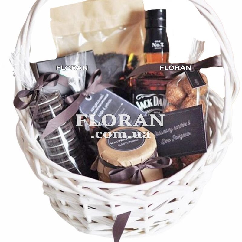 Подарунковий кошик для чоловіка з алкоголем - код товару - FL-1942 - відмінний спосіб порадувати і здивувати вашого особливого чоловіка. У цьому кошику ви знайдете вишуканий чай листової та ароматної кави Lavazza, які допоможуть створити атмосферу затишку та насолоди. Солодкі ласощі у вигляді меду та різноманітного печива додадуть приємні нотки солодощі та задоволення. Але на особливу увагу заслуговують вишукані цукерки в коробці - вони стануть справжнім задоволенням для ласунів і подарують незабутні моменти радості. А щоб завершити цей чудовий набір, у кошику знаходиться пляшка культового віскі Jack Daniels - красиве та стильне доповнення, яке підкреслить шляхетність та вишуканість вашого подарунка. Цей подарунковий кошик для чоловіка з алкоголем і вишуканими частуваннями - чудовий спосіб висловити свої почуття та турботу до вашої особливої людини. І пам'ятайте, що ми з радістю здійснюємо доставку цього розкішного кошика до будь-якого міста України. Так що навіть якщо ви знаходитесь далеко, ви зможете порадувати свого чоловіка цим вишуканим подарунком, який точно запам'ятається йому на довгий час. Не пропустіть можливість зробити його день особливим і незабутнім за допомогою цього шикарного подарункового кошика!