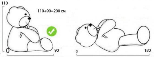 9. Будь-які розміри на сайті вказані орієнтовно. Допускається похибка +/- 5-15%. Довжина сидячих іграшок вимірюється в положенні сидячи (приклад).