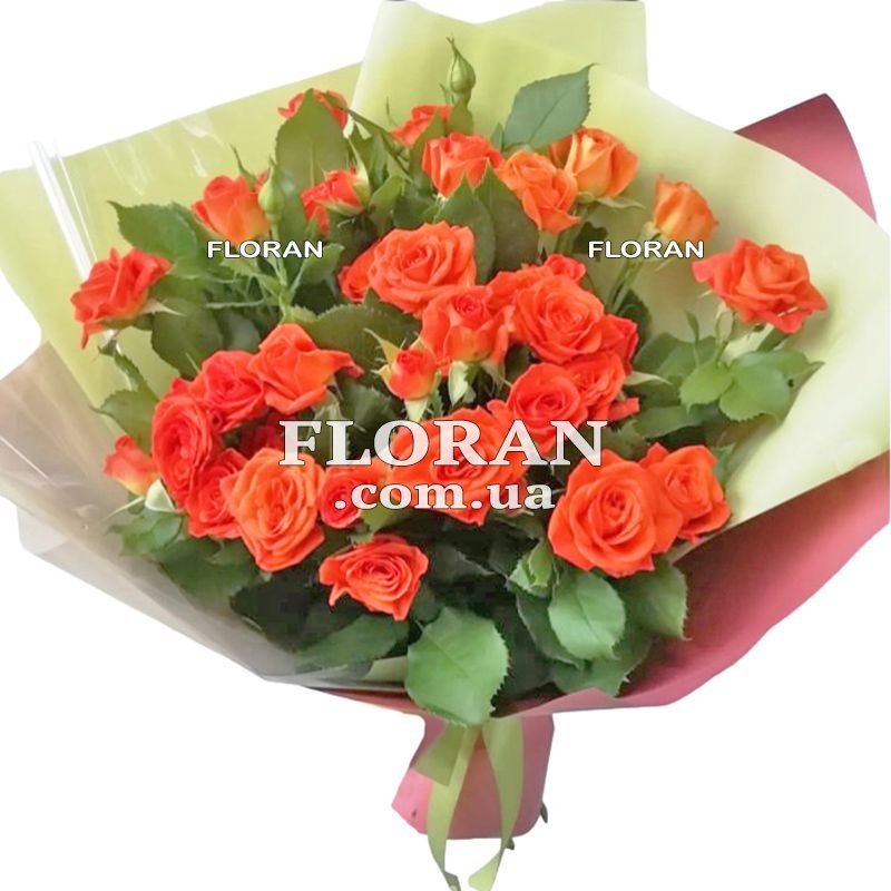 Помаранчева кущова троянда - код товару FL-88. Букет кущових троянд - це завжди прекрасний подарунок, який порадує будь-яку людину. Помаранчева кущова троянда - це справжня знахідка для тих, хто шукає незвичайний і яскравий подарунок. У нашому магазині ви можете замовити букет з 13 помаранчевих кущових троянд, який стане справжньою окрасою будь-якого інтер'єру.