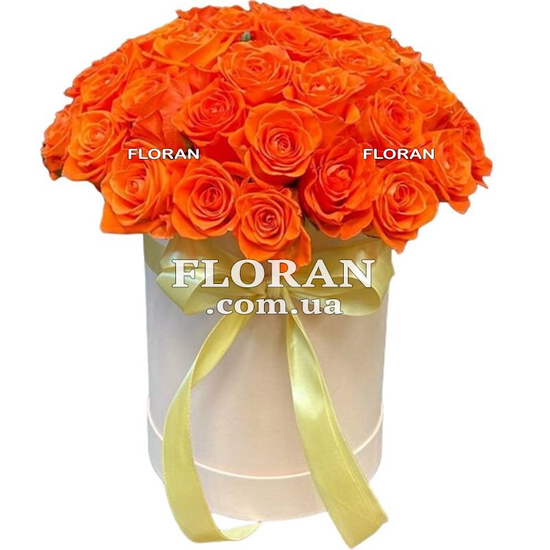 Помаранчеві троянди в капелюшній коробці - код товару FL-1791 - це символ енергії, пристрасті та радості. У капелюшній коробці вони набувають особливої чарівності і стають яскравим акцентом у будь-якому інтер'єрі. Кожен бутон помаранчевої троянди випромінює тепло та трансформує обстановку, створюючи атмосферу затишку та захоплення. Коробка з помаранчевими трояндами буде ідеальним подарунком для будь-якої особливої жінки у вашому житті. Її яскравість і насиченість символізують вашу пристрасть і любов, висловлюючи емоції настільки сильні, як колір самої троянди. Одержувач цього букета буде приємно здивований та захоплений вашою увагою та турботою. Наша команда кур'єрів готова доставити цю чудову коробку помаранчевих троянд у будь-який куточок. Ми розуміємо, наскільки важливою є своєчасна та бездоганна доставка, тому наші кур'єри професійно виконають свою роботу, щоб букет прийшов вчасно та в ідеальному стані. Бездоганність помаранчевих троянд та їхня яскравість будуть збережені, щоб створити незабутні враження та подарувати радість одержувачу.