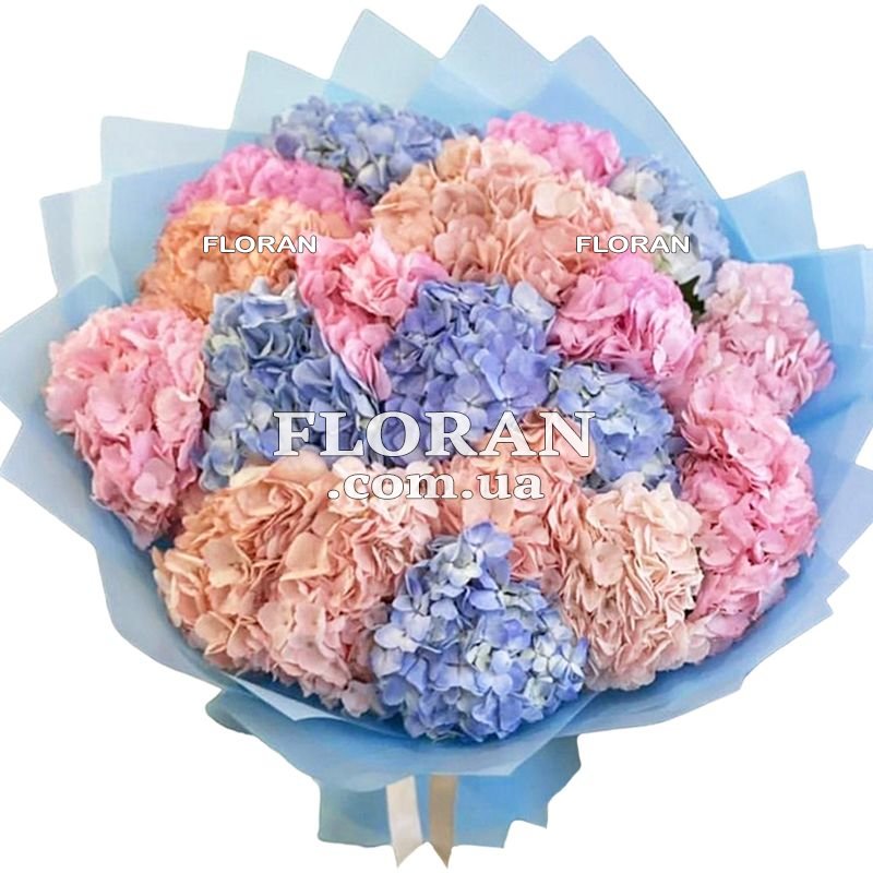 Різнокольоровий букет гортензій – код товару FL-1541 – це справжній квітковий калейдоскоп, який привнесе яскравість та радість у життя одержувача. Кожна гортензія у цьому букеті має унікальний відтінок, створюючи гарне поєднання різнокольорових кольорів. Такий букет гортензій стане чудовим подарунком для будь-якого випадку – від дня народження до ювілею, від весілля до випускного. Він дозволить висловити вашу ніжність, любов і турботу про близьку людину. Різнокольорові гортензії символізують різноманітність емоцій та почуттів, а також говорять про радість, веселощі та життєрадісність. У цьому букеті кожна гортензія має свій особливий відтінок – від яскравих рожевих та фіолетових до ніжних синіх та білих. Це створює вражаючий візуальний ефект та надає букету особливої привабливості. Упаковка, в яку буде акуратно укладено букет, додає шарму та завершує його оформлення. Ми гарантуємо свіжість і якість кожної гортензії в букеті, щоб вона радувала око і зберігала свою красу якомога довше. Наша служба доставки забезпечить безпечну та своєчасну доставку цього різнокольорового букету до будь-якого міста нашої країни, будь то Мукачеве чи Покровське. Вибираючи цей різнокольоровий букет гортензій, ви подаруєте одержувачу чудовий момент радості та замилування. Нехай кожна гортензія символізує вашу увагу та турботу, і нехай цей яскравий букет наповнить їхній день яскравими фарбами та позитивними емоціями.