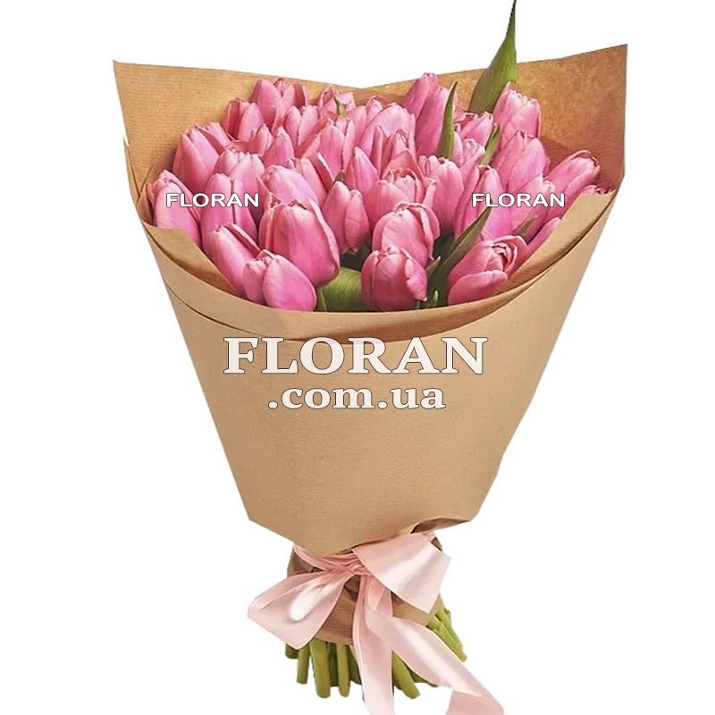Рожеві тюльпани в крафт папері - код товару FL-2363. Цей букет з 45 рожевих тюльпанів, упакованих у крафт-папір, випромінює невимовну атмосферу ніжності та романтики. Рожеві тюльпани є символом ніжних почуттів, кохання та захоплення. Вони ідеально підходять для вираження своїх почуттів та створення особливої атмосфери. Букет рожевих тюльпанів в крафт-папері підійде для подарунка коханій дамі, будь то вашій дівчині, дружині, матері або навіть близькій подрузі. Він також ідеально підходить для важливих романтичних подій, таких як дні народження, річниці або, звичайно, для подарунка на День Святого Валентина. Упаковка в крафт-папір додає особливого шарму цьому букету. Вона створює відчуття натуральності та рукоділля, що робить подарунок ще більш особливим і неповторним. Не забудьте скористатися нашою послугою доставки, щоб переконатися, що ваш букет потрапить до одержувача вчасно та у свіжому вигляді, щоб радувати своєю красою та ароматом.