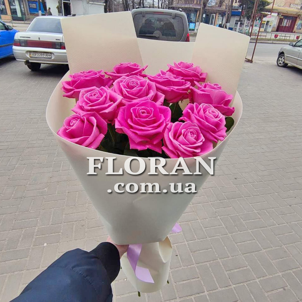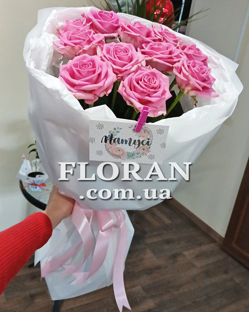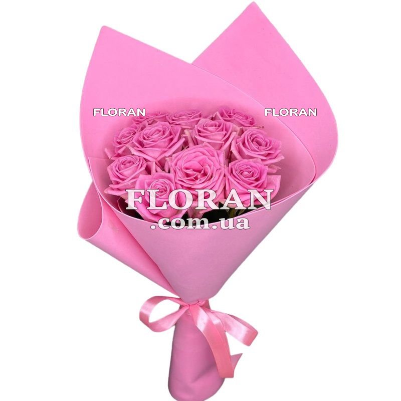 Рожевий букет - код товару FL-662. Такий ніжний та романтичний букет з 11 рожевих троянд у рожевій упаковці буде чудовим подарунком для коханої жінки чи дівчини. Рожевий колір символізує любов, ніжність, надію та мрії, що робить такий подарунок ще більш значущим та особливим. Букет з 11 рожевих троянд виглядає дуже елегантно та вишукано завдяки гармонійній комбінації кольору квіток та упаковки. Такий подарунок буде відмінним вибором для багатьох випадків, таких як день народження, повішення на службі, річниця весілля або просто висловити свою любов і увагу до близької людини.