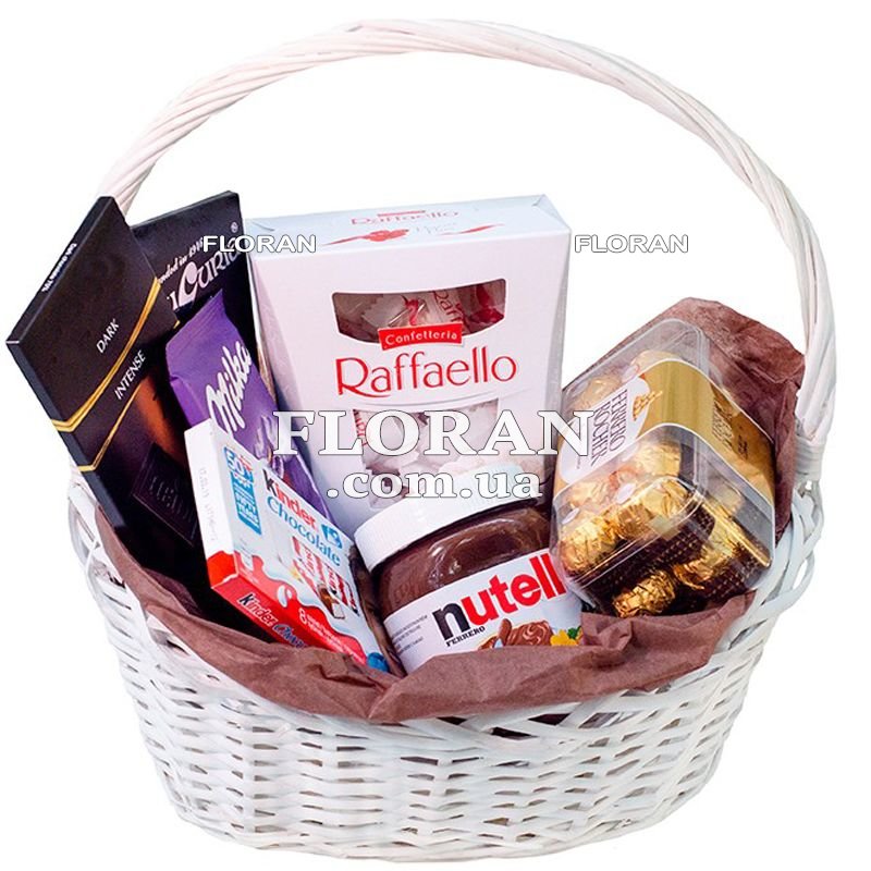 Шоколадний кошик - код товару FL-2020 - це справжній рай для любителів солодкого та ароматного шоколаду. Ми зібрали для вас найвишуканіші шоколадні частування, щоб подарувати вам незабутній смачний досвід. У цьому кошику ви знайдете знамениті цукерки Ferrero Rocher, які обволікають вас ніжним лісом лісового горіха та крему, а також цукерки Raffaello, в яких заховані ніжні кокосові начинки. Ці цукерки підкорюють своїм неповторним смаком. Асортимент кошика доповнюють Kinder Chocolate, плитки натурального шоколаду та ароматна шоколадна паста. Ці частування принесуть у ваш будинок нотки розкоші та солодкої насолоди. Шоколадний кошик - це ідеальний подарунок для тих, хто цінує справжній смак та ніжність шоколаду. Подаруйте її своїм близьким або насолоджуйтесь цими частуваннями на самоті, поринаючи у світ шоколадного блаженства.
