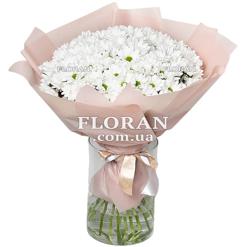 Шикарний букет ромашок - код товару FL-895. Представляємо вашій увазі шикарний букет ромашок, що складається з 35 білих ромашкових хризантем. Цей букет привертає погляд своєю ніжною красою і витонченістю. Біла ромашкова хризантема - це символ чистоти, невинності та свіжості. Її білосніжні пелюстки і витончена форма надають букету вишуканості та елегантності. Білий колір ромашки також асоціюється зі світом, гармонією і чистотою думок.