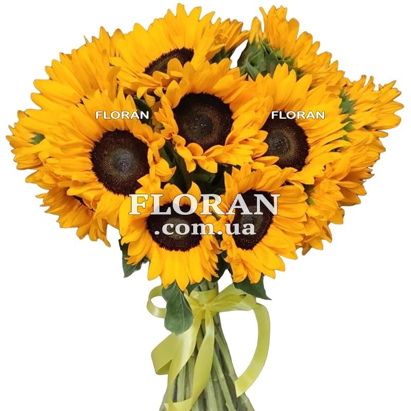 Соняшники - код товару FL-1499. Соняшники - чудові квіти, які привертають увагу своєю яскравістю та красою. Символізуючи оптимізм, сонячність та благополуччя, вони є справжніми літніми квітами, наповнюючи навколишній світ теплом та радістю. Їхні великі квіти, спрямовані до сонця, створюють неповторний образ і уособлюють вірність і відкритість. Букет з 21 соняшника - це чудовий вияв яскравості та елегантності. Кожна квітка, оточена зеленню і чудово оформлена, створює вражаючий образ. Цей букет стане ідеальним подарунком для різних випадків: від дня народження до весілля, від святкування успіхів до вияву кохання та подяки. Він подарує радість та сонячний настрій, запам'ятаючись своєю унікальністю та привабливістю. Наш магазин з гордістю пропонує доставку цього чудового букета з соняшників. Ми усвідомлюємо важливість своєчасної та бездоганної доставки квітів, тому гарантуємо, що букет буде дбайливо упакований та доставлений у потрібне місце. Наша команда професійних флористів створить букет з великою турботою та увагою до деталей. Довірте нам доставку своїх емоцій і подаруйте незабутню радість близькій людині за допомогою нашого чудового букета зі соняшників, прикрашеного витонченою стрічкою.