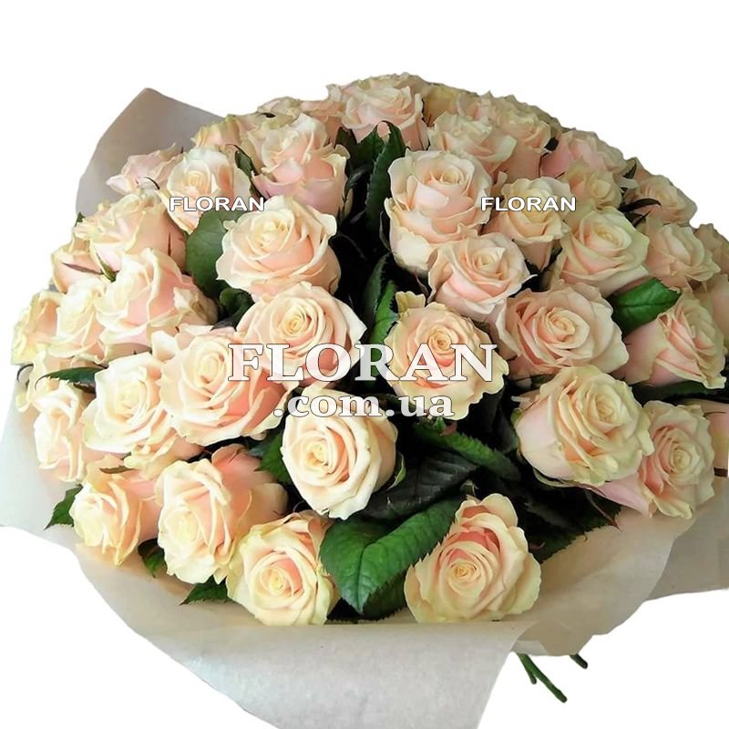 Святковий букет троянд - код товару FL-2779 - це неперевершений подарунок для створення особливої атмосфери у святковий день. Кремові троянди символізують ніжність, повагу та захоплення. Їх ніжний відтінок приносить гармонію та спокій, що робить цей букет ідеальним вибором для різноманітних урочистостей. Цей букет може стати чудовим подарунком на день народження, ювілей, весілля або будь-яку іншу значущу подію. Він висловить ваше захоплення та побажання щастя. Кожна троянда в цьому букеті - це символ уваги та турботи, який ви даруєте своїй близькій людині. Упаковка надає цьому букету стиль та витонченість, гарантуючи, що він виглядатиме вишукано як на момент вручення, так і під час святкової церемонії. Наші кур'єри забезпечать надійну доставку цього чудового букета у зручний для вас час та місце, щоб створити незабутній момент радості та захоплення для вас та вашого одержувача.