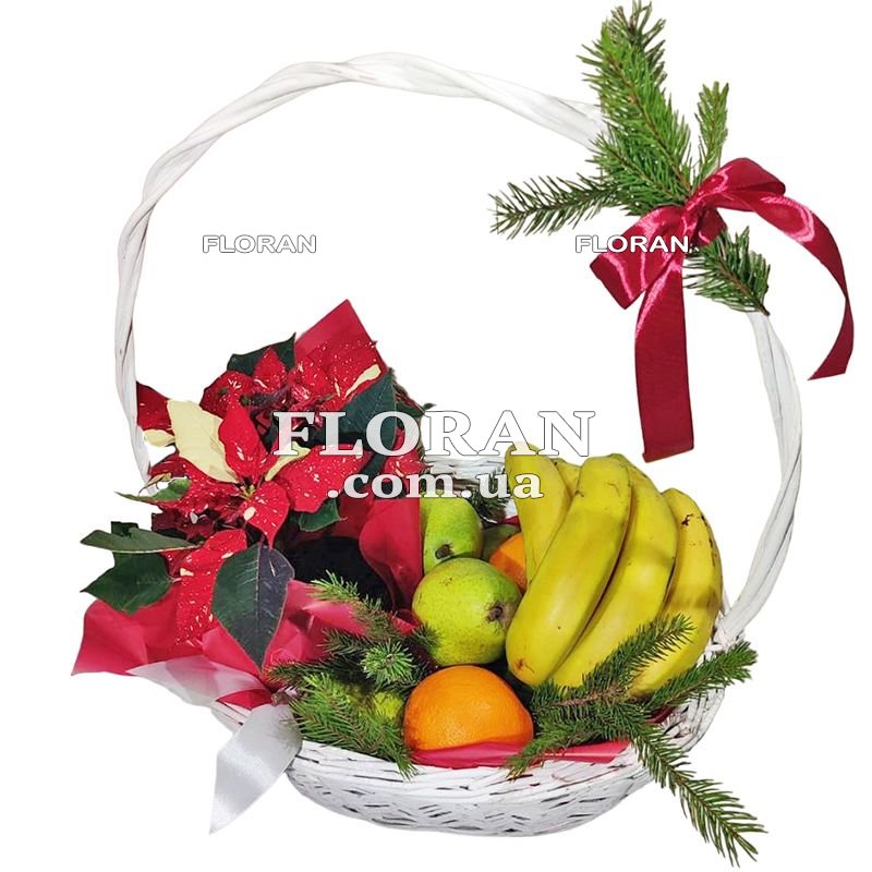 апельсини, яблука, груші, банани, Пуансетія в горщику, гілки ялини або сосни (в період з 6.12 по 31.12)