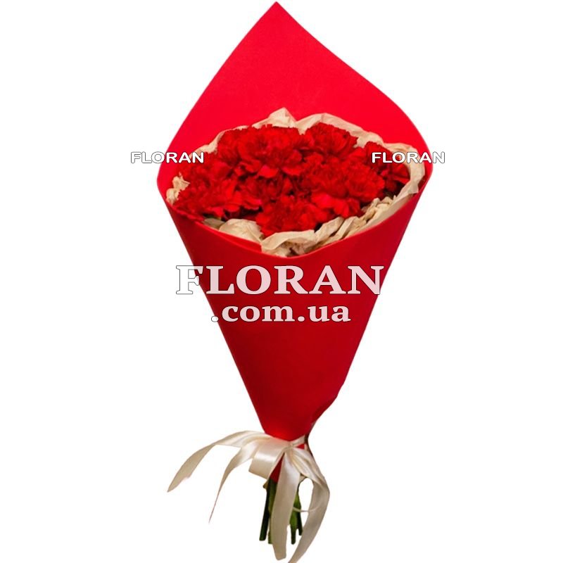 Симпатичний букет гвоздик - код товару FL-1680 - це елегантний вибір для особливої нагоди або просто для того, щоб підняти настрій близької людини. Гвоздики - це класичні квіти, які символізують любов, пристрасть та прихильність. Кожна квітка гвоздики у цьому букеті відрізняється своєю вишуканою красою та пишнотою. Їхній яскравий червоний колір привертає увагу та уособлює глибокі почуття та емоції. Завдяки своїй простоті та водночас вишуканості, гвоздики є чудовим вибором для подарунка коханій людині або для прикраси особливого заходу. Букет із 15 червоних гвоздик упакований із турботою та увагою до кожної деталі, щоб підкреслити його красу та свіжість. Упаковка захищає квіти та зберігає їхню свіжість під час доставки. Ми пропонуємо доставку нашим надійним кур'єром, щоб ваш букет досяг отримувача вчасно та в бездоганному стані. Незалежно від того, де знаходиться ваша особлива людина, ми зможемо доставити цей симпатичний букет гвоздик до будь-якого міста України. Порадуйте своїх близьких та близьких серцю людей цим симпатичним букетом гвоздик. Його яскравість та елегантність не залишать байдужими та подарують незабутні моменти радості та кохання.