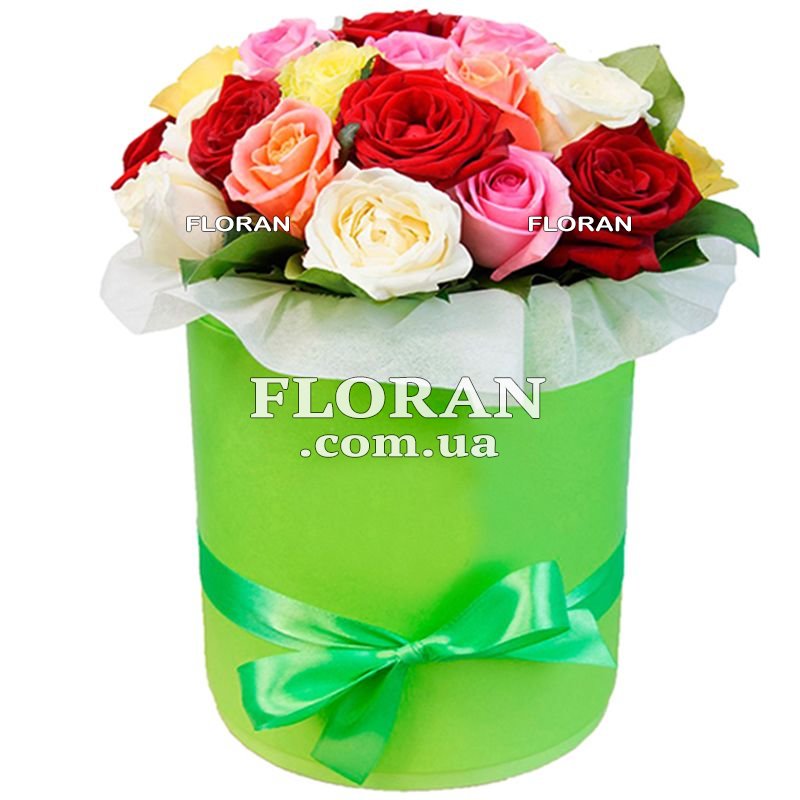 Троянди мікс у шляпній коробці - код товару FL-1808. Ви можете купити барвистий букет із 25 різнокольорових троянд, представлених у стильній капелюшній коробці. Ця композиція з міксу троянд порадує око своїми яскравими та різноманітними відтінками. Букет із троянд різних кольорів – це символ радості, різноманітності та життєрадісності. Кожна троянда в цьому букеті має свій власний унікальний відтінок, який створює яскраву та вражаючу гаму кольорів. Цей букет ідеально підійде для вираження будь-яких почуттів та емоцій. Капелюшна коробка, в якій представлені троянди, додає особливий шарм та стиль до композиції. Вона надає букету оригінальності та дозволяє виділитися серед інших подарунків. Коробка є не тільки зручною упаковкою, а й прикрасою букета. Щоб придбати цей чудовий букет з 25 різнокольорових троянд у капелюшній коробці, ви можете звернутися до нашого магазину або скористатися нашим онлайн-сервісом замовлення. Ми гарантуємо свіжість та якість квітів, а також оперативну доставку вашого замовлення. Ви можете вибрати зручний для вас час і місце доставки, щоб порадувати одержувача цим яскравим подарунком. Не пропустіть можливість подарувати радість та кольори за допомогою цього прекрасного букета з 25 троянд у капелюшній коробці. Цей подарунок стане справжнім втіленням вашої любові та уваги до отримувача.