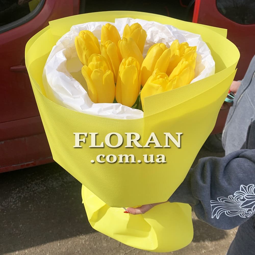 Тюльпани 11 шт - код товару FL-2267 - це чудовий вибір для яскравого та сонячного подарунка. Жовтий колір символізує щастя, радість та дружбу, роблячи цей букет ідеальним для вираження теплих почуттів та найкращих побажань. Він підходить для різноманітних подій та заходів, починаючи з святкування дня народження та закінчуючи подарунком просто так, щоб підняти настрій та створити посмішку на обличчі вашого одержувача. Наші жовті тюльпани завжди свіжі та красиво оформлені в елегантну упаковку. Ви можете замовити цей букет для доставки з особливої нагоди або, можливо, просто щоб зробити день вашого друга, родича або близької людини яскравішими і теплішими. Подаруйте радість та позитив за допомогою цього чудового букету жовтих тюльпанів.