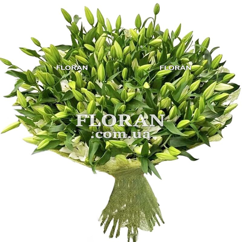 Подаруйте цей чудовий букет білих лілій, щоб висловити свою любов, повагу та захоплення. Він стане виразним знаком уваги та подарунком, який довго цінуватиметься і радуватиме свого одержувача. Величезний букет із 51 білої лілії – це чудовий вибір для особливої людини. Він символізує важливість і значущість, відображаючи вашу прихильність і любов. Цей букет стане яскравим проявом ваших найтепліших і найщиріших почуттів, які оцінять як мама, так і кохана, і навіть сестра.