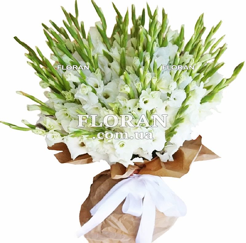 Великий букет білих гладіолусів - код товару FL-1877. Великий букет білих гладіолусів з 61 прекрасною квіткою - це чудовий і значний подарунок, який заповнить будь-який простір витонченістю та вишуканістю. Цей букет є втіленням чистоти, ніжності та елегантності. Білий колір гладіолусів символізує чистоту та непорочність, а також є виявом поваги та поваги до одержувача букета. Він також уособлює початок нового етапу та піднесеність почуттів. Цей великий букет білих гладіолусів – чудовий вибір для особливих моментів та урочистих подій. Він ідеально підійде для ювілеїв, весіль, корпоративних заходів та інших урочистих випадків. Кожен із 61 гладіолуса в цьому букеті підібраний з особливою ретельністю та турботою, щоб створити гармонійну та красиву композицію. Кожна квітка говорить про турботу та увагу, які ви хочете передати одержувачу. Упаковка букета також буде оформлена з любов'ю та увагою до деталей, щоб наголосити на його важливості та значущості. Цей букет стане яскравою окрасою будь-якого заходу та подарує радість та захоплення всім, хто його побачить. Якщо ви хочете зробити цей чудовий букет білих гладіолусів комусь особливому, але знаходитесь далеко, не турбуйтеся. Наша служба доставки із задоволенням допоможе вам доставити цей чудовий букет у будь-який куточок світу. Надійний кур'єр оперативно доставить його прямо в руки щасливого отримувача, щоб зробити цей день ще особливішим і незабутнішим.