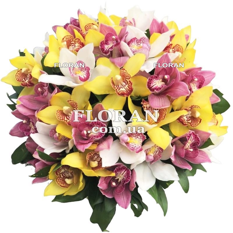 Великий букет орхідей – код товару FL-424. Цей букет з орхідей - справжній витвір мистецтва. У ньому зібрано цілих 51 різнокольорова орхідея, кожна з яких є унікальною і красивою по-своєму. З орхідеями пов'язують безліч легенд та переказів, їх краса та витонченість зачаровують та надихають. Цей букет – справжній подарунок для поціновувачів прекрасного. Орхідеї різного кольору, але всі вони однаково ніжні та красиві. Якщо ви хочете порадувати своїх близьких чи друзів, то цей букет – чудовий вибір. 51 орхідея в одному букеті - це справді вражаюче видовище. Орхідеї - це символ кохання, краси та вишуканості. Даруйте цей букет і ви напевно викличете посмішки та радість у своїх близьких.