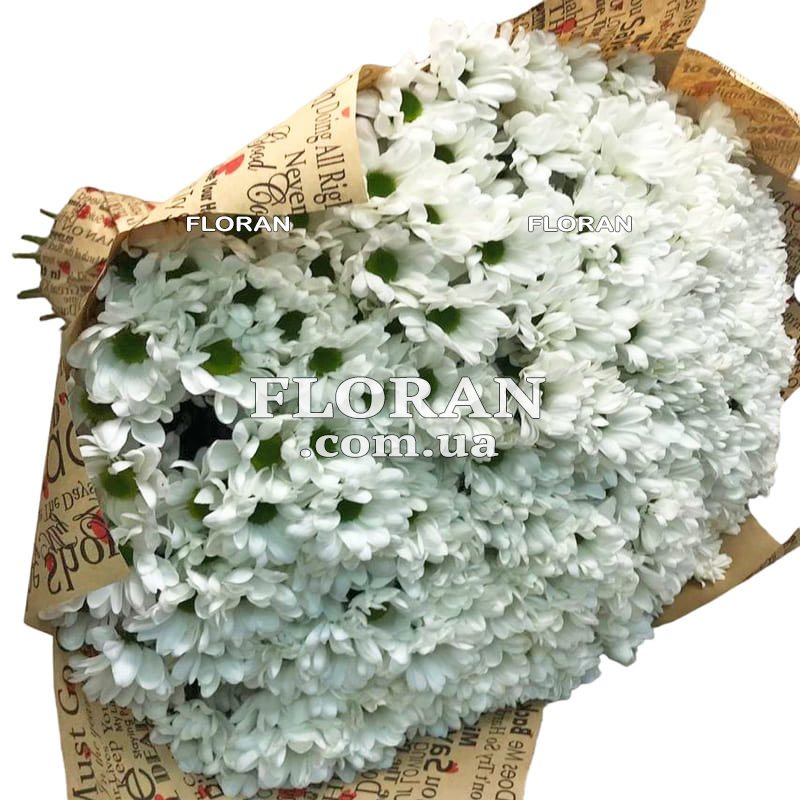Великий букет із 51 білої ромашкової хризантеми створюватиме враження свіжості та романтики. Обгорнутий букет в красиву обгортку та стрічку з листівкою з вашими побажаннями робить його більш особливим та особистим. Цей букет стане яскравим та чудовим подарунком, який підкреслить важливість та особливість моменту, в якому ви його вручаєте.