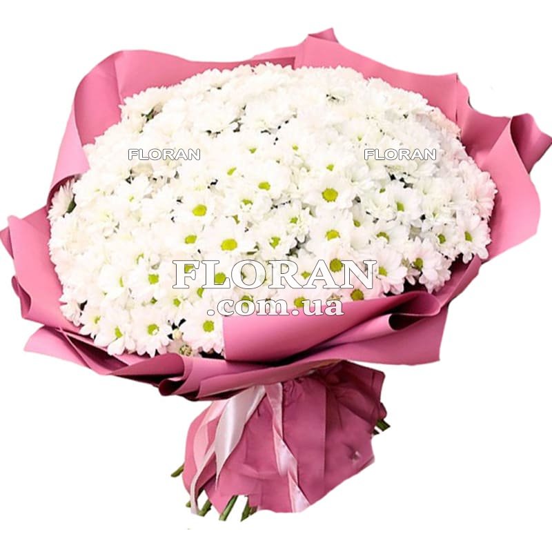 Великий букет ромашок - код товару FL-901. Попереду вас чекає прекрасний і вражаючий подарунок - великий букет ромашок, що складається з 55 ромашкових хризантем. Цей букет стане яскравим і радісним акцентом у будь-якому приміщенні та принесе в нього атмосферу свіжості й життя. 55 ромашкових хризантем в цьому букеті володіють неперевершеною красою і чарівністю. Білосніжні пелюстки ромашок є символом чистоти й ніжності, а їхня чудова форма та витонченість створюють враження ніжних хмар. Цей букет стане ідеальним вибором для тих, хто любить класичну і витончену красу ромашок.