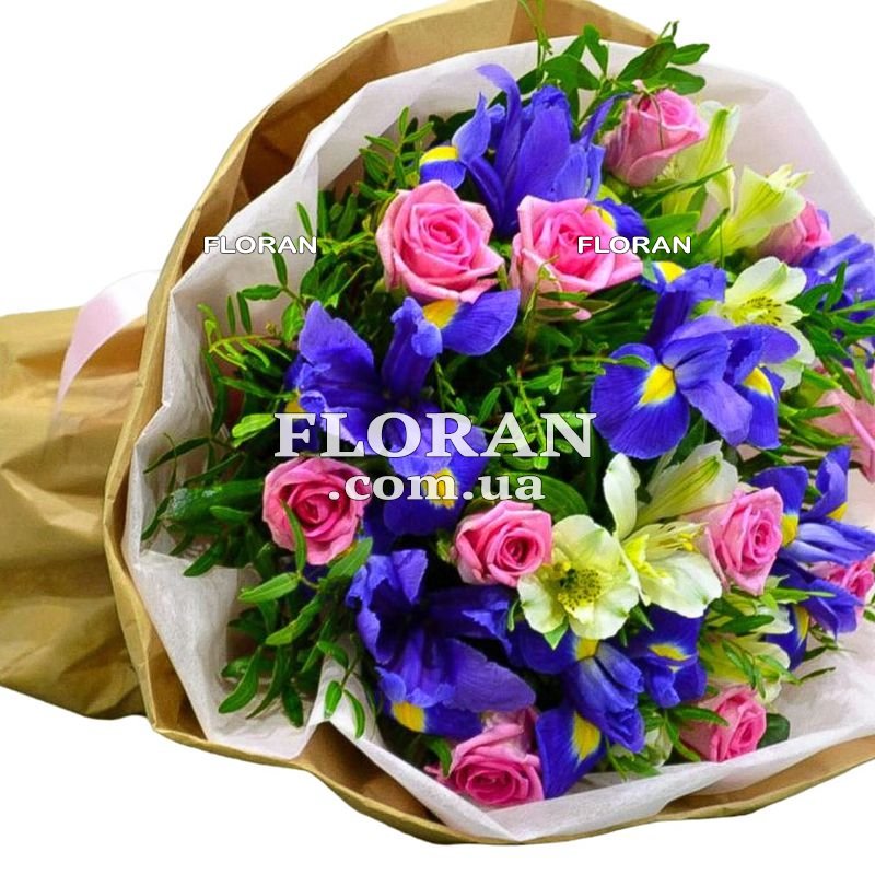 Збірний букет з ірисами - код товару FL-2505 - це різноманітне та барвисте поєднання квітів, яке підходить для різних випадків та одержувачів. Цей букет приносить у подарунок подяку, повагу та ніжність. Рожеві троянди символізують ніжність та повагу. Вони висловлюють почуття і підходять для висловлення подяки та визнання. Троянди також можуть бути символом любові та відданості. Білі альстромерії приносять у подарунок чистоту та яскравість. Вони символізують дружелюбність та радість спілкування. Альстромерії додають до букету свіжість та радість. Іриси символізують ніжність та витонченість. Вони створюють атмосферу гармонії та чуттєвості. Поєднання ірисів з трояндами та альстромеріями надає букету різноманітності та багатства. Упаковка для букета допомагає зберегти його свіжість та надати подарунку завершеного вигляду. Це додає додаткової елегантності та оформляє ваш подарунок якнайкраще. Такий букет можна відправити коханій жінці, щоб висловити свою ніжність та почуття. Він також підходить для висловлення подяки вашій мамі за її турботу та кохання. А також, цей букет може стати символом визнання та поваги до вашого лікаря за його професіоналізм та турботу про ваше здоров'я. Наш магазин гарантує надійну доставку букета в будь-яке місто України та в будь-яке місце. Ми дбаємо про те, щоб ваш подарунок досяг отримувача у найкращому стані, зберігаючи свіжість та красу квітів. Букет збірний з 11 рожевими трояндами, 5 білими альстромеріями та 7 ірисами - це вияв подяки та ніжності, який підходить для різних випадків та одержувачів. Цей букет приносить незабутні моменти та висловлює ваші почуття.