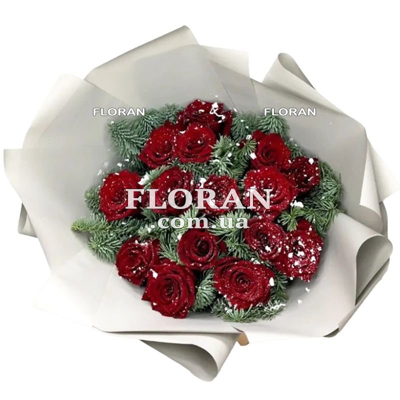 Зимовий букет червоні троянди - код товару FL-2219. Зима - це час, коли природа приходить у стан спокою, а теплі та затишні моменти найважливіше. Саме тому зимові букети, особливо з червоними трояндами, такі популярні. Цей зимовий букет включає 15 витончених червоних троянд, що символізують пристрасть і тепло. Ці троянди немов сяючі яскраві зірки на тлі засніженої ялинки або сосни, які додають букету нотки свята та чаклунства. Зимовий букет із червоними трояндами - це ідеальний подарунок, який підкреслює красу та витонченість моменту. Він говорить про те, що навіть у найхолодніші дні можна знайти тепло та красу. Такий букет буде чудовим подарунком для коханої жінки, мами чи подруги, і він, напевно, викличе захоплення та радість у одержувача. Ми також надаємо доставку в будь-яке місто України, щоб ваш зимовий букет досяг адресата в безпеці та в потрібний час. Подаруйте цей букет і підкресліть важливість і красу моменту, який ви хочете розділити з тими, хто вам дорогий.